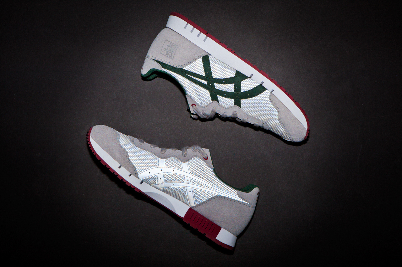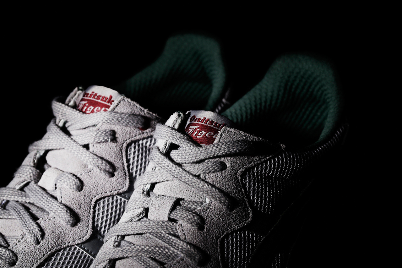 这双由Onitsuka Tiger与德国著名鞋店The Good Will Out共同打造的“Silver Knight”X-Caliber联名鞋款,设计灵感源于中世纪的骑。鞋身选用灰色麂皮与网面材质打造,并搭配红绿色细节。值得一提的是,此鞋鞋面还加入了3M反光细节。此鞋款将于12月14日发售。