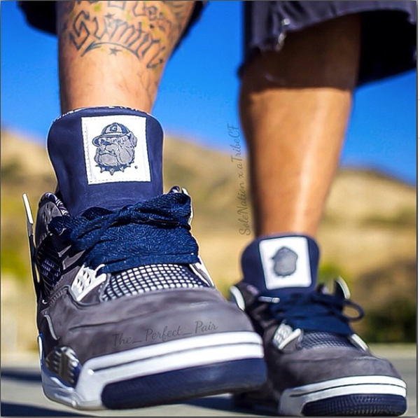 今年夏季的时候,一款 Air Jordan 4 “Georgetown” PE 横空出世,吸引无数 Air Jordan 粉丝的目光。此后这款稀有PE也短暂现身著名购物网站 eBay。近日,Instragram 上的国外大神也为我们带来了这款PE的上脚照,乔治城大学标志性的配色配以鞋舌上的斗牛犬 Logo,霸气无比。