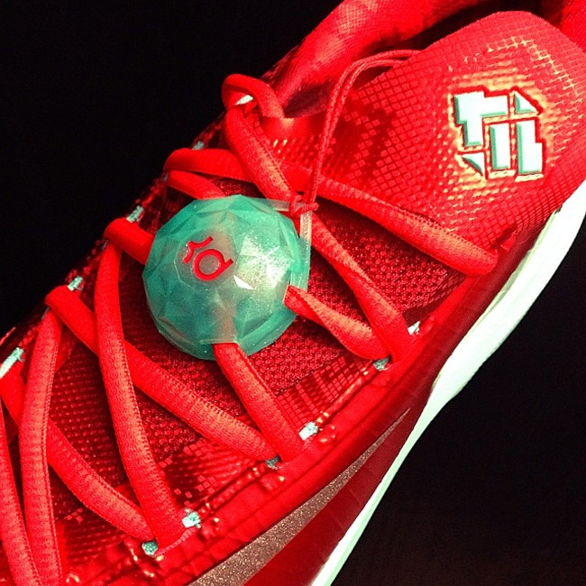 这款 Nike KD6 "Christmas" 具有浓烈的圣诞节日气氛,红色的整体鞋身搭配绿色的 Swoosh 和 KD LOGO,内侧还有圣诞毛衣图纹,节日氛围浓厚,并且这也是 KD6 系列第一次带上鞋带扣。 货号:599424-601 发售日期: 12 月 26 日