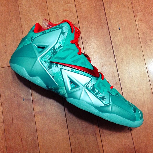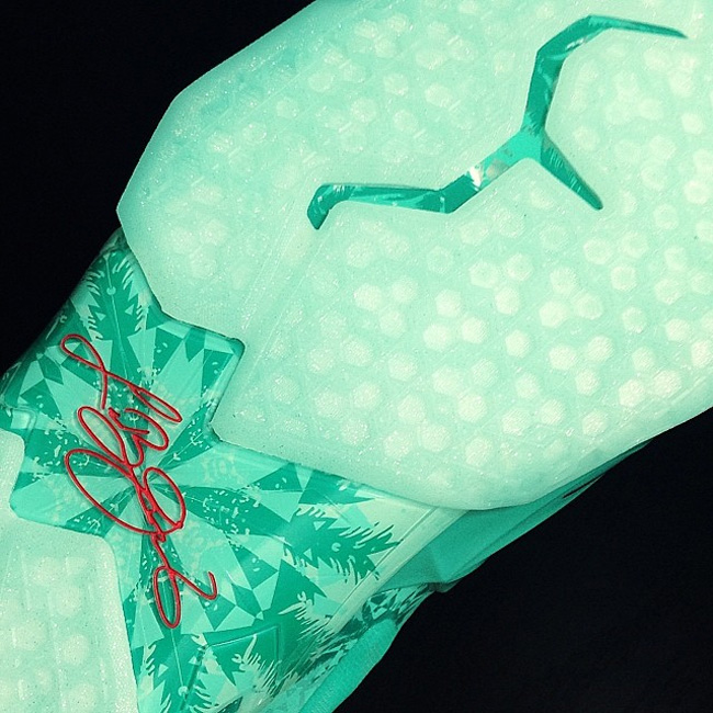 这款圣诞配色的 Nike LeBron 11 "Christmas" 和 LeBron 以往圣诞鞋款的最大不同在于绿色成为了主色调。绿色的鞋身,点缀上抢眼的大红色的 Swoosh 和鞋带,这样的深浅色调搭配也颇具视觉冲击力,而圣诞树图纹的陪衬更增节日气氛。 发售日期:12 月 26 日