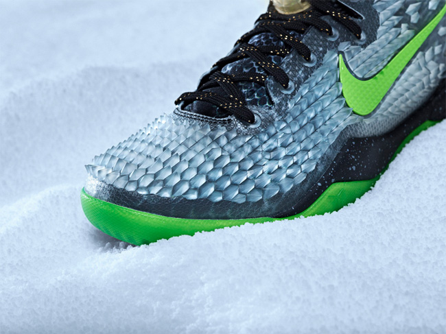 Kobe 8 System SS 则采用了一种十分独特的鞋面设计,菱角状的 TPU 覆盖了整个鞋面,就像穿上了盔甲一般,货号为 639522-001。