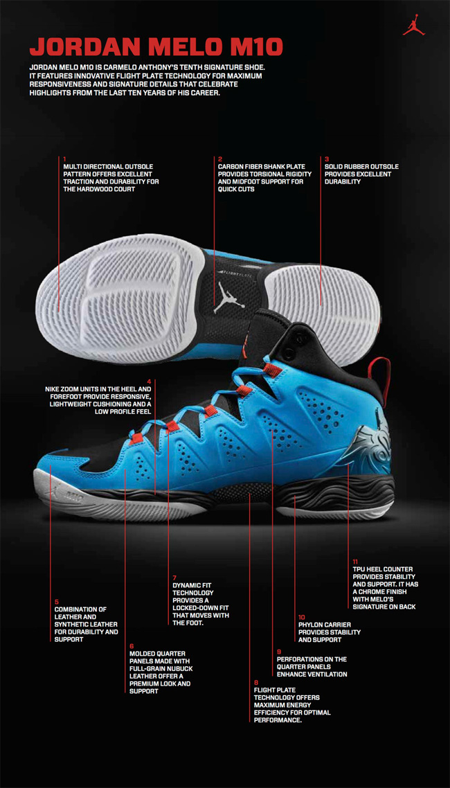 安东尼和 Jordan Brand 的合作步入第十个年头,他的第十代签名战靴 Jordan Melo M10 也即将在 2014 年 1 月 4 日正式发售。