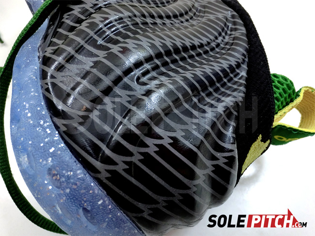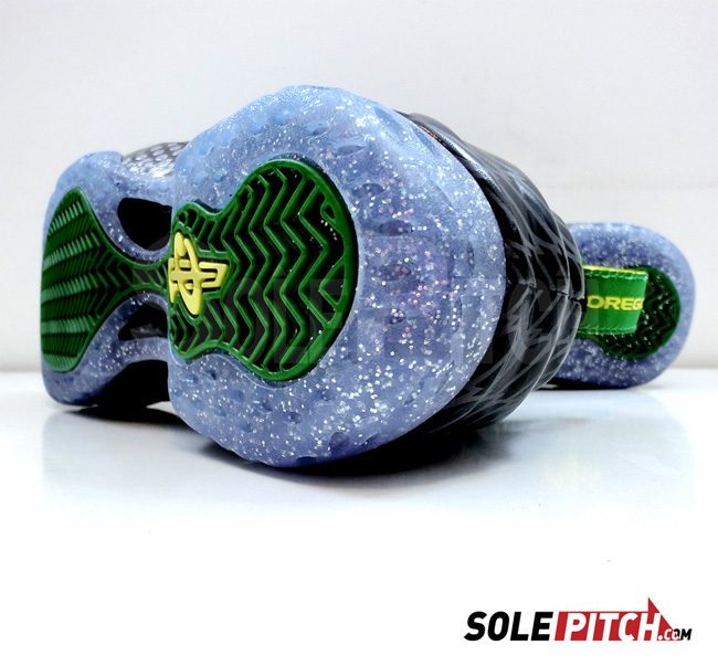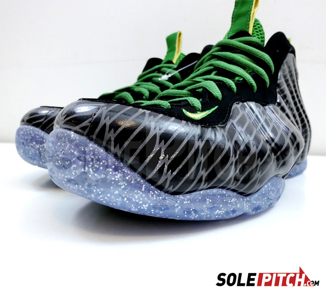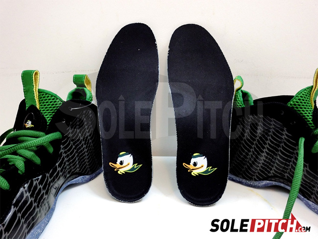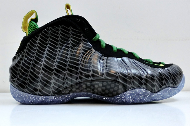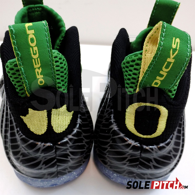 完美精致的细节一直是俄勒冈鸭子版球鞋的主要特点,这款 Nike Air Foamposite One "Oregon Ducks" 也不例外。 整体采用了经典的俄勒冈黑绿配色,发泡材质的鞋面上布满了鸭子羽毛般的图纹,鞋后跟和鞋提上都有俄勒冈的 LOGO 和文字,鞋舌和鞋垫上都有俄勒冈鸭子的卡通图案,雪花水晶大底也异常抢眼。 货号:652110-001