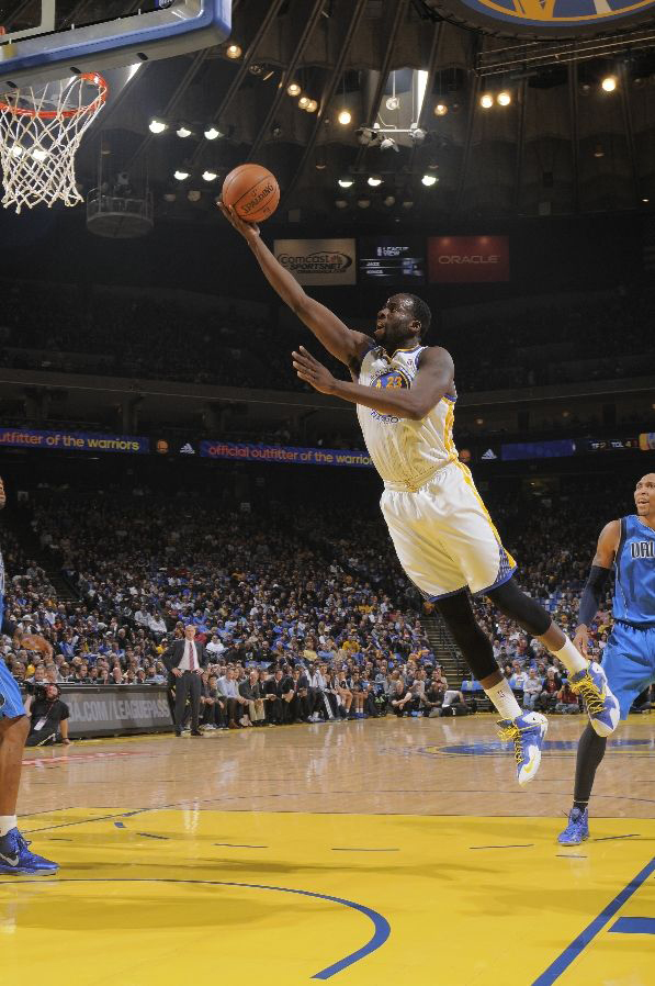 虽然勒布朗 詹姆斯本人在本赛季基本不穿最新的 LeBron 11 上场比赛,但是似乎联盟中其他球员却对 LeBron 11 情有独钟。在昨天勇士对阵小牛的比赛中,勇士队小将德拉蒙德 格林便上脚了一双十分漂亮的 LeBron 11 iD 配色并表现不俗,这款 LeBron 11 iD 以白蓝色的鞋身为主基调,Swoosh 、鞋带以及内衬则以亮黄色呈现。
