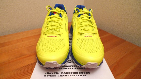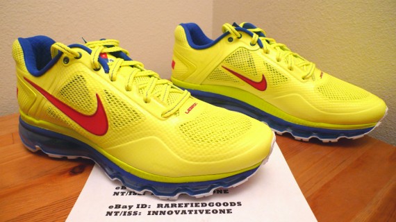 相信不少人都清楚,LeBron James的球员版鞋款可不仅仅只有篮球鞋而已,就如眼前这双Air Trainer 1.3 Max PE,LeBron曾于2012年亲穿曝光,黄色鞋身配以红色以及皇家蓝色细节,鞋舌以及鞋垫均有Dunkman标志出现。此双PE现正在eBay出售中。