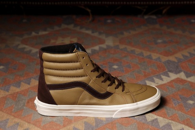 Vans 旗下高端支线 Vans California 又出新品,此次 Vans California 以机车文化与皮革为主题,推出了两款全新的 Sk8-Hi Reissue CA Leather 新品。此次共有棕色以及黑色两款不同配色,鞋款以优质的皮革打造鞋身,后跟则以麂皮材质加持,质感出色。