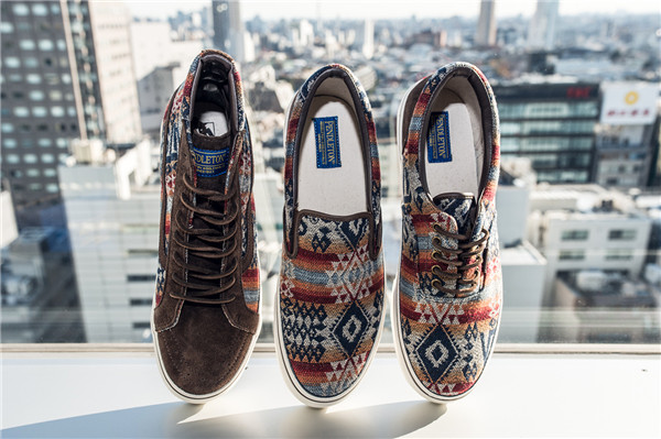 来自美国的纺织品生产商 Pendleton 常常与其它品牌开展联名,最耳熟能详的作品莫过于与 Nike 合作的 “N7” 系列。此次联手 Vans 日本团队打造了2013秋冬联名系列,囊括了 Era、Sk8-Hi 和 Slip On 三双经典鞋款。鞋面使用了充满名族风的羊毛材质结合麂皮打造,质感出众。喜欢民族风穿搭的朋友不应该错过这个系列,现在已经可以在 Vans 日本店铺买到了。