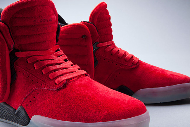为了迎接即将到来的圣诞节日,Supra 发布了一款限量版的全红 Supra Skytop 4 "Red"。这款鞋采用了红色麂皮鞋面,质感十足。大底采用了 SUPRAFOAM 材质,脚踝处带有可拆卸的 Supra 特色护栏条,将于 12 月 24 日正式发售。