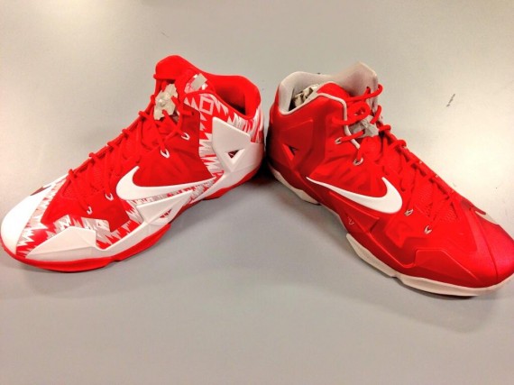 继佛罗里达大学之后,网上再次曝光一款为美国大学球队打造的专属Nike LeBron 11,两双全新PE专为俄亥俄州立大学七叶树队制作。一款以红色作为鞋身主色凋配以白色细节,另一双则以白色搭配红色并辅以特别的折纹装饰。