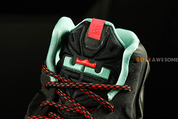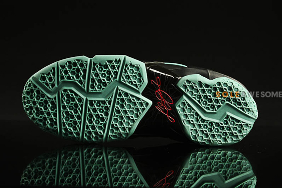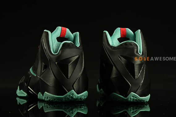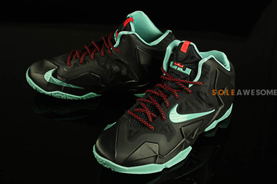 Nike LeBron 11重拾如“迈阿密之夜”、“加农炮”之类的配色主题,而最新曝光的Nike LeBron 11 GS看来也是如此。黑色鞋身搭配薄荷绿色细节,鞋带配以红色点缀,难道此款的配色主题是“红毯”吗?