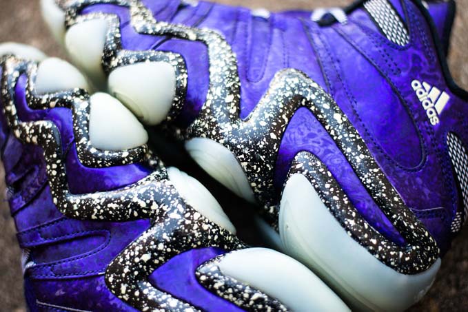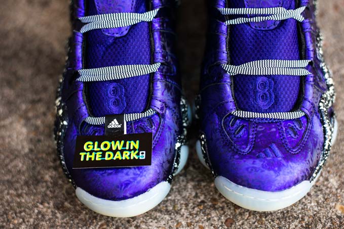 这款 adidas Crazy 8 “Nightmare” 配色近日得到了多方关注,昨天我们也为大家曝光了这款鞋的特殊包装。今天继续为大家奉上这款鞋的最新实物图赏,可以看出,除了奢华的紫色鞋身以及大面积的泼墨设定之外,鞋款在黑夜下的夜光表现也极为惊艳!据悉,这款 adidas Crazy 8 “Nightmare” 将于12月21日左右正式发售。