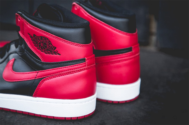 这款打破常规冲破束缚的球鞋,对于 Nike、乔丹和球鞋历史都具有跨时代的意义。而这次的复刻完整的遵循了元年的设计,经典黑和红的公牛队配色,鞋舌带有 Nike Air 刺绣,9 孔鞋带孔,Nike 大底,后跟处也没有飞人的 LOGO。
