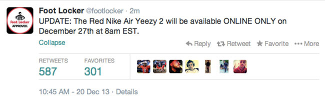 2013 年 12 月 27 日正好是 Nike 和 Kanye West 的合同到期的日子,如果当天不发售,这款全红的超人气球鞋将很难再有发售的可能。