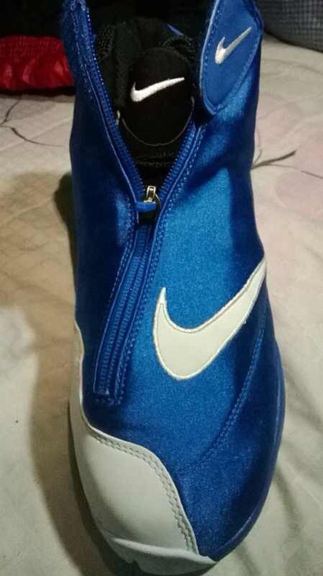 一款蓝白配色的 Nike Air Zoom Flight The Glove 曝光了实物图片,整体采用了蓝色的鞋面,部分鞋头、Swoosh 和大底运用了白色,而内靴则采用了黑色搭配蓝色的猴爪。 更多 Nike Air Zoom Flight The Glove 的相关信息请点击查看。
