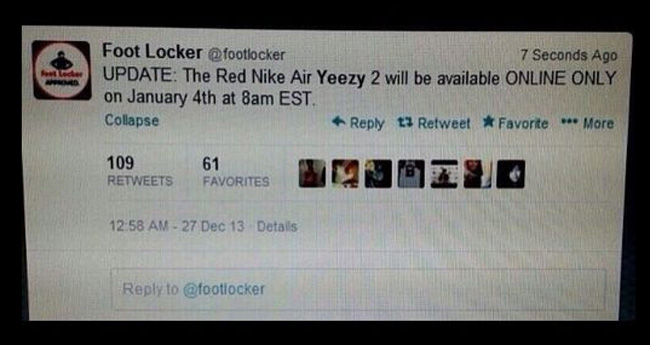 Foot Locker 还是会在 27 日发售 Yeezy 2 Red,但没有明确的时间点