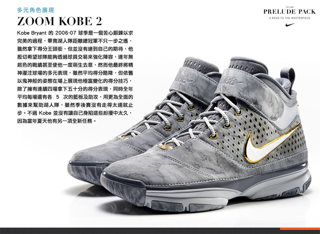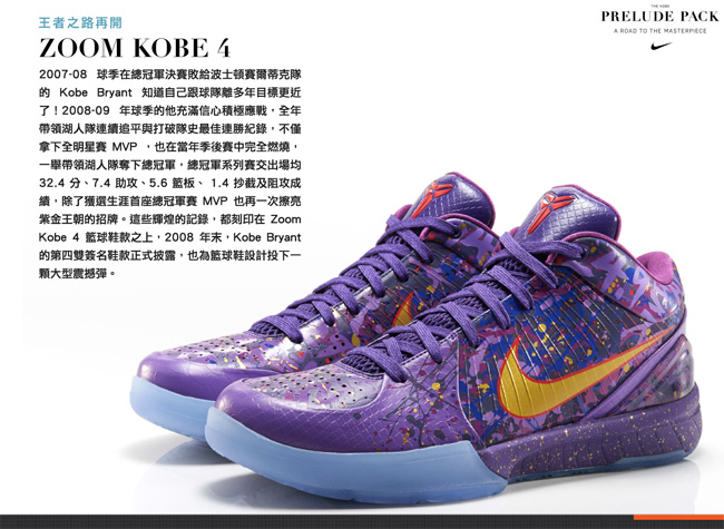 科比的纪念套装 Nike Kobe Prelude 已经有 4 双与粉丝们见面了,这四款原本就设计精美、造型突出的球鞋在“大师之路”的设计题材之下,融合了多种艺术手法,将科比的职业生涯完美地呈现于球鞋之上。 让我们来看看 kenlu.net 出品的前十款 Kobe Prelude 精彩回顾。 via kenlu.net