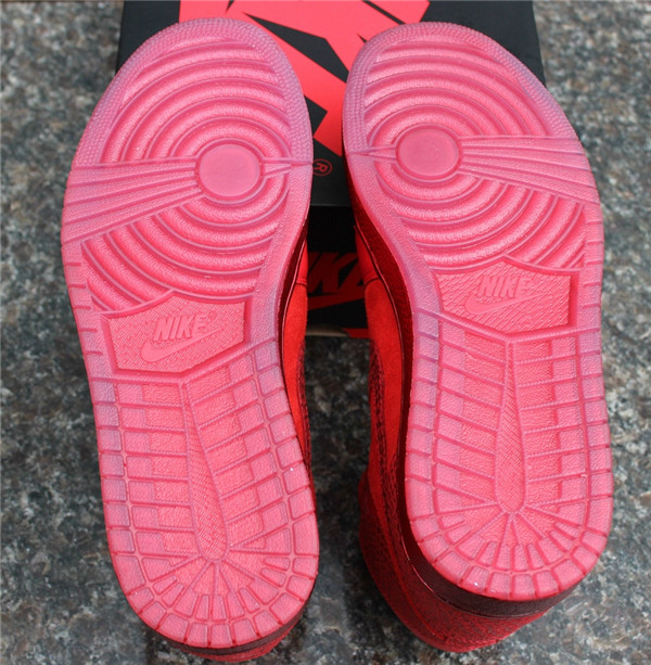 这款全红配色的 Air Jordan 1 LOTS 采用了质感上佳的麂皮和皮革拼接构成鞋面,而后跟处鞋帮和 Swoosh 则采用了蛇皮纹皮质,在搭配红色的中底和大底,整体效果抢眼并且细节完美。