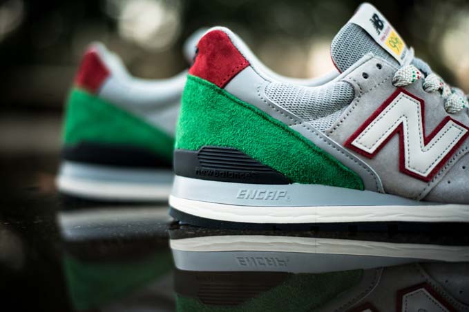 New Balance 即将在 2014 年带来地球元素为题材的 "National Parks" 系列,包含了陆地、天空和海洋为灵感的三双鞋款。这款 New Balance M996PG 以陆地为设计灵感来源,整体采用浅灰色搭配绿色构成鞋身,细节则采用亮眼的红色点缀。