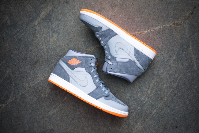 将有多款 Air Jordan 1 Mid 新配色在近期发售,这款灰橙配色的 Air Jordan 1 Mid 的灰色鞋身采用质感上佳的麂皮和皮革拼接而成,再点缀橙色的飞翼 LOGO、飞人 LOGO 和大底,整双鞋质感十足颇具活力。 相关信息: Air Jordan 1 Mid "Bred" 黑红配色现已发售
