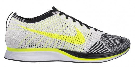 采用 Flyknit 鞋面的跑鞋 Nike Flyknit Racer 在今日发布全新配色,鞋面由黑白黄三色编织而成,搭配白色大底,大底上点缀黑色和荧光黄色的细节,整体效果十分抢眼。 货号:526628-170 售价:$150