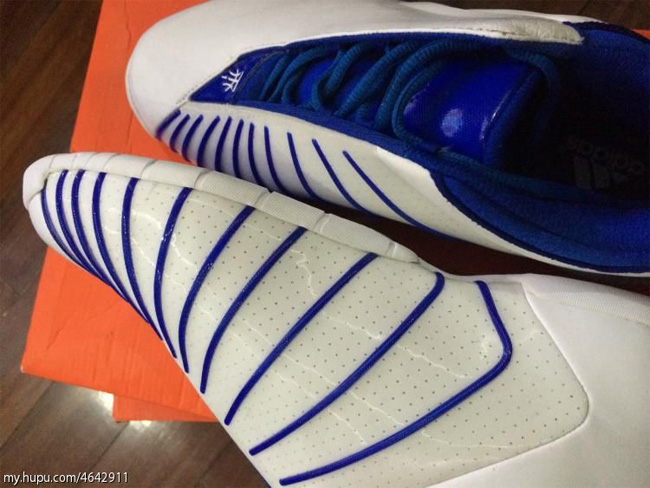麦迪的第三代签名战靴已经确定将在今年复刻回归,除了元年的白蓝配色,鸳鸯的蓝红漆皮配色也将发售。 现在有了更多的谍照曝光,这款白蓝配色的 adidas T-Mac 3 Retro 鞋面皮革质感不错,目前还不清楚这次复刻的具体科技配置情况。更多的相关信息我们将持续带来。 相关信息: Adidas T-Mac 3 将在 2014 年复刻