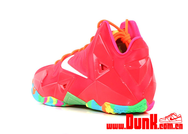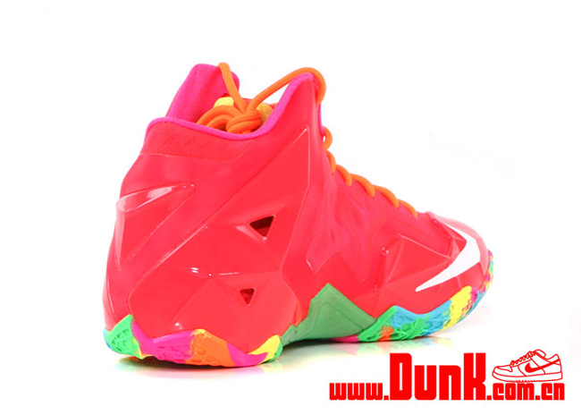 水果色的 LeBron 11 GS "Fruity Pebbles" 已经登陆 dunk.com.cn,这款专为女性打造的 GS 鞋款运用了鲜艳的粉红色鞋身,搭配五颜六色的大底,既可爱又颇具活力。 货号:621712-600 购买链接:http://www.dunk.com.cn/showshoes.asp?id=13171 售价:¥1169