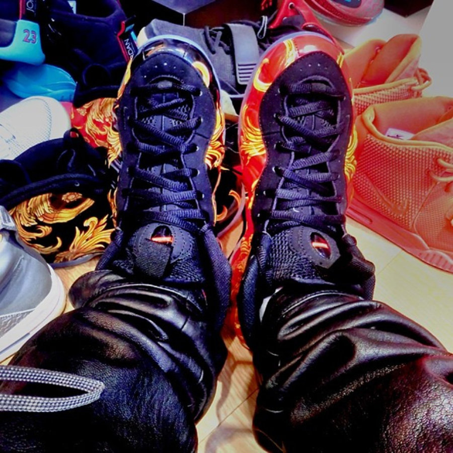 颇具巴洛克艺术风格的 Nike Air Foamposite One "Supreme"以其惊艳的鞋面表现吸引了众多的眼球,而这一红一黑两款配色的上脚效果也不尽相同。红色鞋面搭配金黄图纹显得颇为喜庆,而黑色鞋面的应用则更显奢华之感。 黑色货号:652792-001 红色货号:652792-600