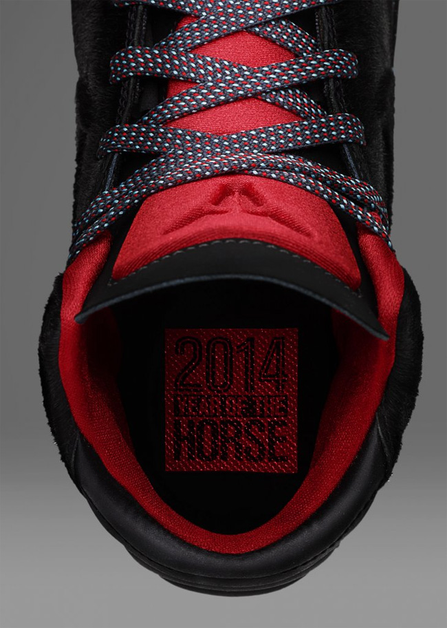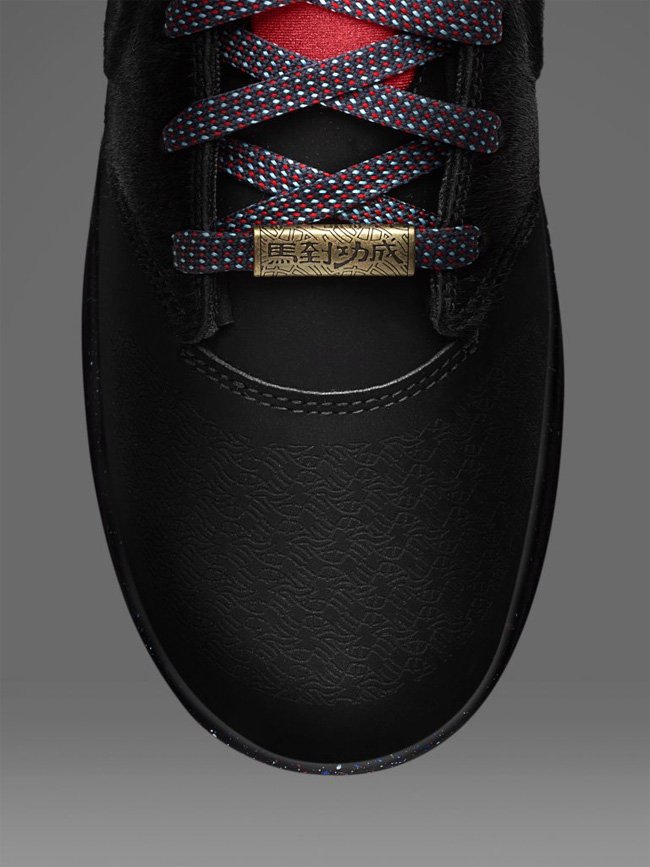 这款马年配色的 Nike Kobe 9 NSW Lifestyle YOTH 应用了黑红灰三色打造鞋身,黑色的鞋面带有特殊的纹路,质感强烈,红色的鞋舌上带有 KOBE LOGO,起到了抢眼的点缀作用。而鞋带上带有“马到功成”四字的鞋带扣则表明了它马年别注的身份。 这款 YOTH 配色的球鞋将于 2 月 17 日正式发售。