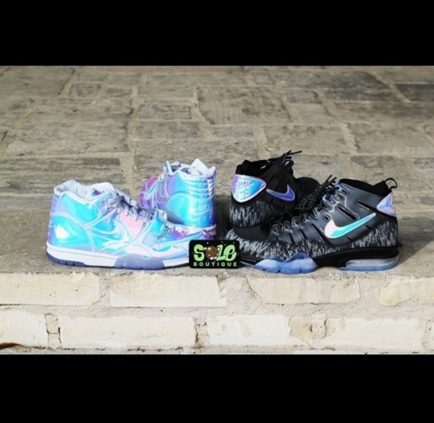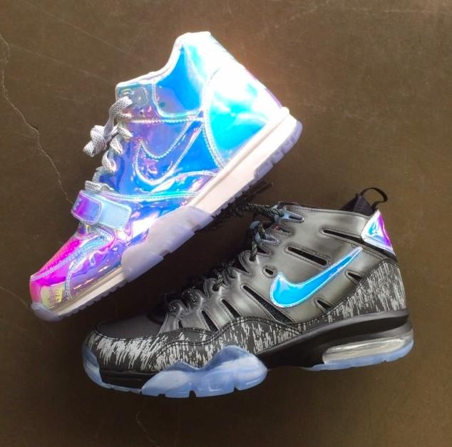 Nike为迎接即将开打的第48届超级碗总决赛,特地于近日推出了特殊的“超级碗”套装。该套装由Nike Air Trainer 1 与Nike Air Trainer 94 组成,鞋款均采用亮眼的反光材质打造而成,极具视觉冲击力。