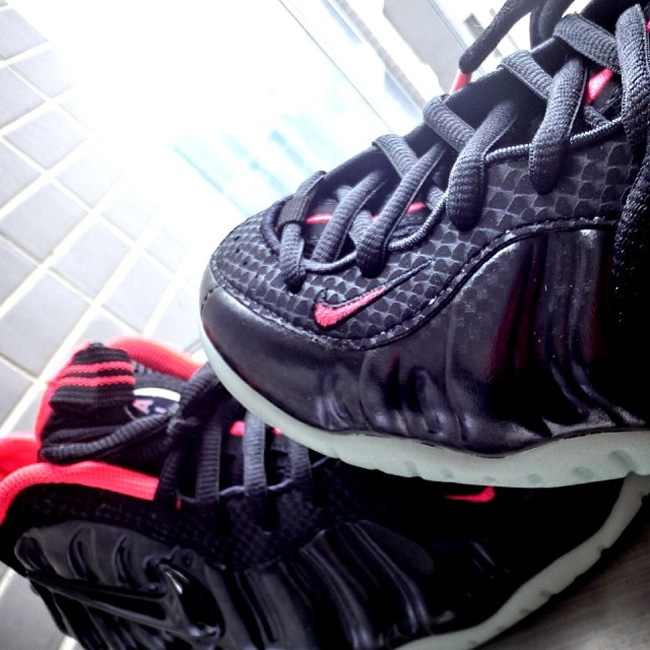 黑色的发泡鞋面上由碳纤维纹路覆盖,而内靴和细节采用抢眼的粉色打造,整体质感强烈,而细节部分也值得细细品味。 预计将在今年 5 月正式发售。 货号:616750-001 相关信息: 黑粉泡 Nike Air Foamposite Pro "Solar Red"上脚实拍 新色曝光!Nike Air Foamposite Pro 黑粉配色实物图赏