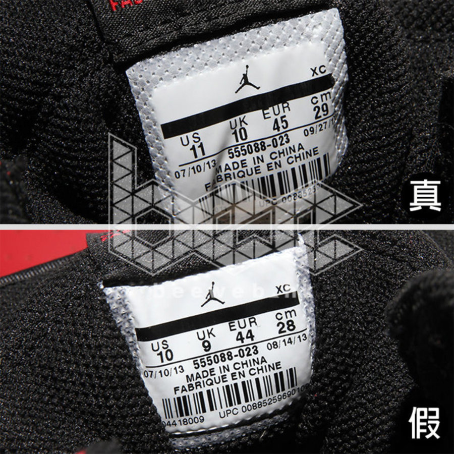 5. Size Tag - 真鞋 size tag 四边均有白边;但假鞋 size tag 上方却没白边