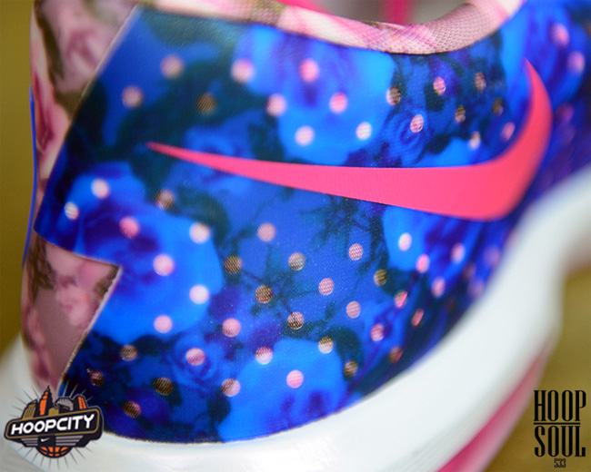 KD 系列的必备配色,为了纪念杜兰特因乳腺癌去世的阿姨 Aunt Pearl。这次在 KD6 鞋身上的呈现格外特别,并没有采用粉色作为主色调,鞋身的内侧和外侧都布满了蔷薇花图案。 搭配蓝色的 Swoosh 和 KD Logo,鞋舌上则有 Kay Yow 丝带标志。将于近期发售。 货号:618216-600