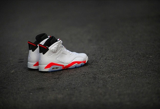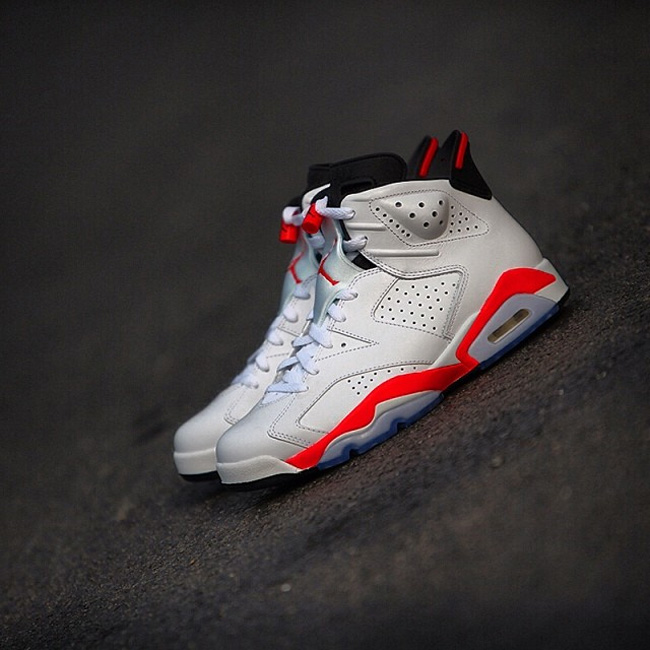 这款经典的白红外线配色 Air Jordan 6 "White Infrared"将于 2 月 15 日正式复刻回归。 这次的复刻版本采用白色的皮质鞋面,搭配激光红的中底,大底则采用了和 Air Jordan 5 一样的蓝色水晶底。在元年的基础上又带来了不一样的感受,你是否期待? 货号:384664-123 发售日期:2014 年 2 月 15 日 相关信息: Air Jordan 6 "White Infrared" 更多实物实拍欣赏