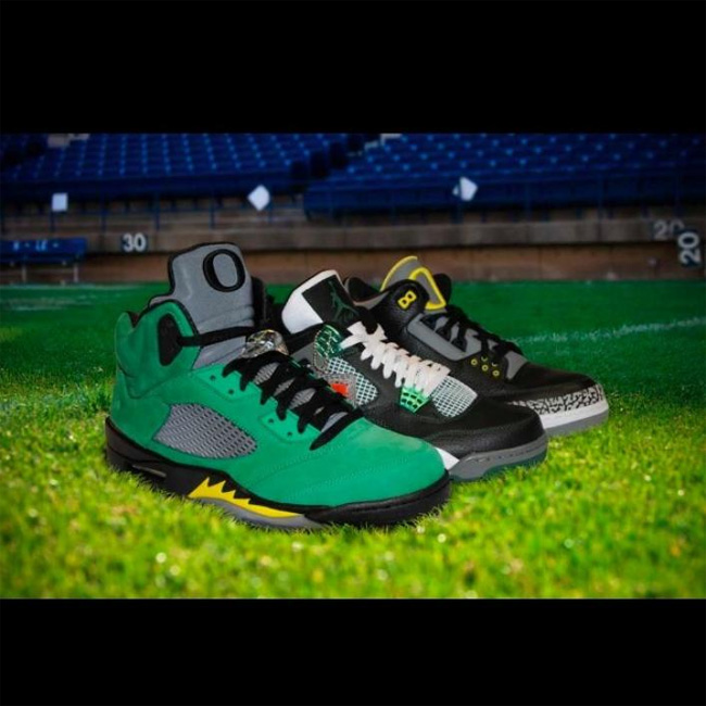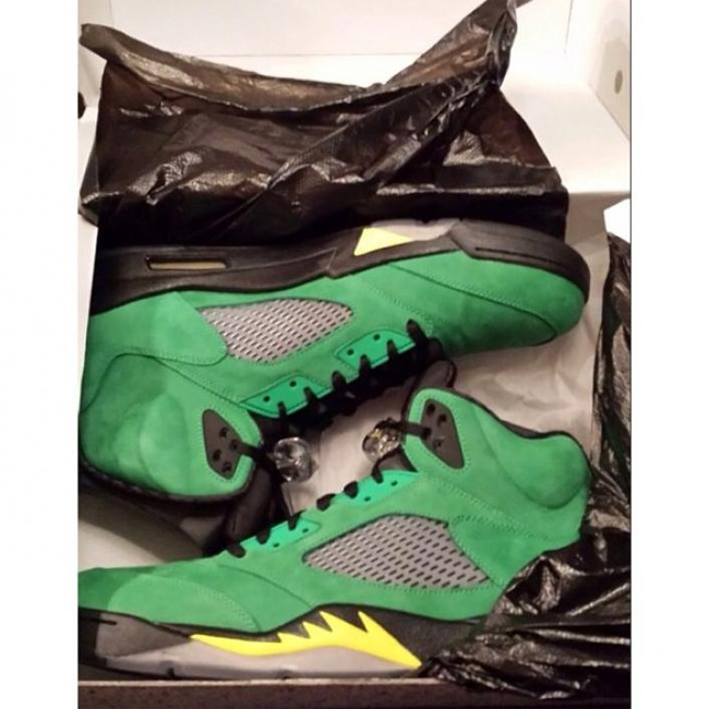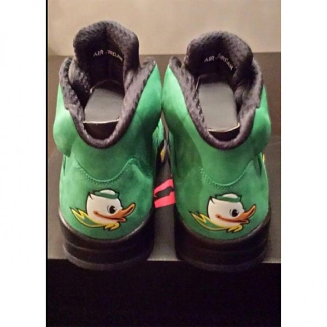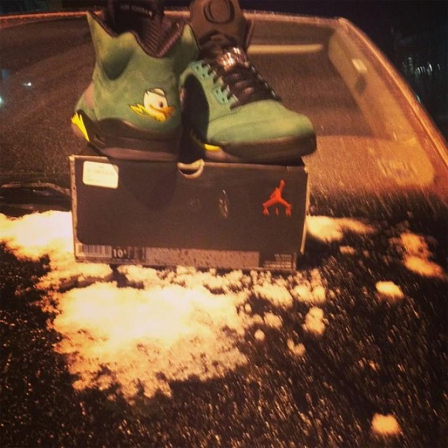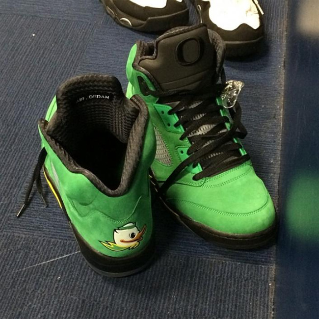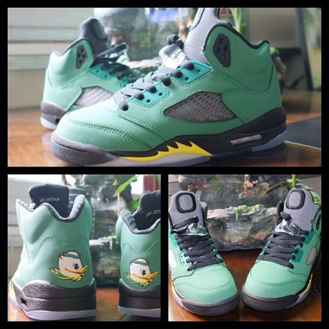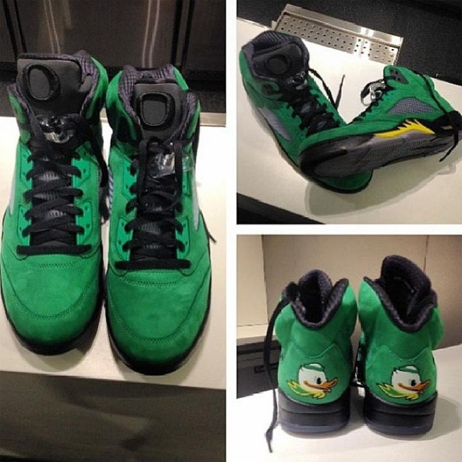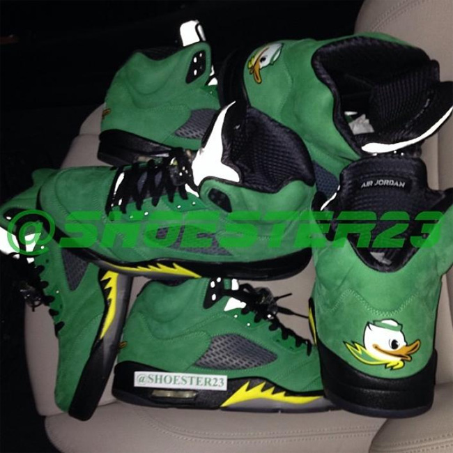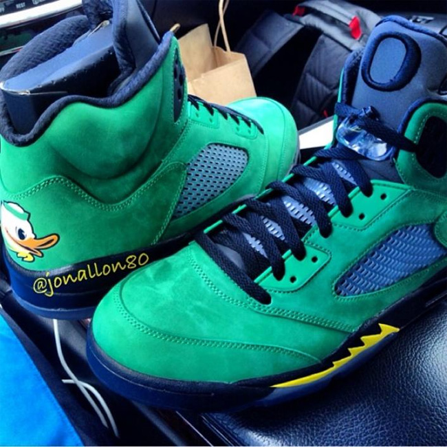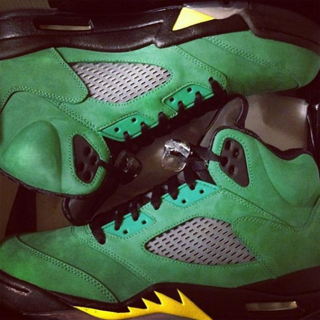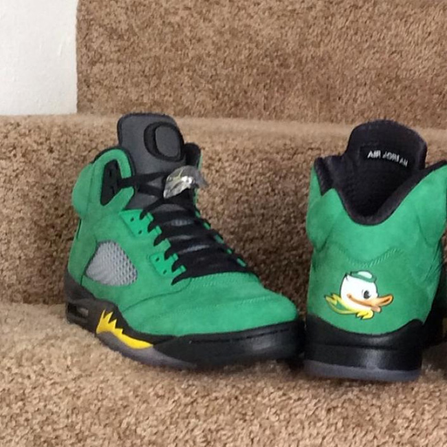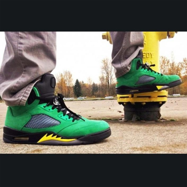 这次俄勒冈鸭子和 Air Jordan 5 的结合同样吸引了大量的关注度,这款已经热得满城风雨的 Air Jordan 5 "Oregon Ducks" PE 将在 2014 年 2 月 15 日 NBA 全明星周末正式市售,不过传言货量极小。