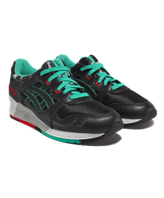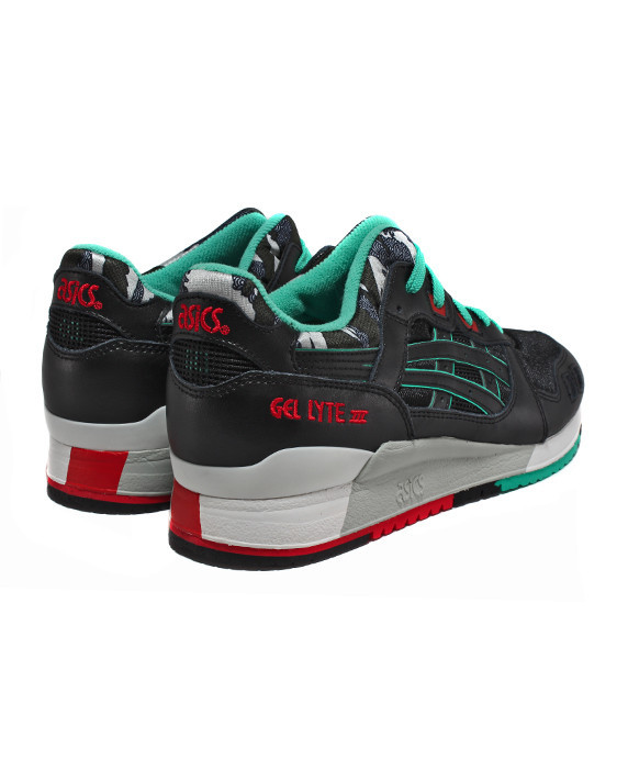 Asics旗下大热鞋款Gel Lyte III 推出全新“Future Camo”配色。黑色皮质鞋身搭配白灰中底,绿色及红色细节点缀鞋身之上,后跟处还加入了特殊的迷彩图案。此鞋款现已发售,售价:110美元,喜欢的朋友不要错过!