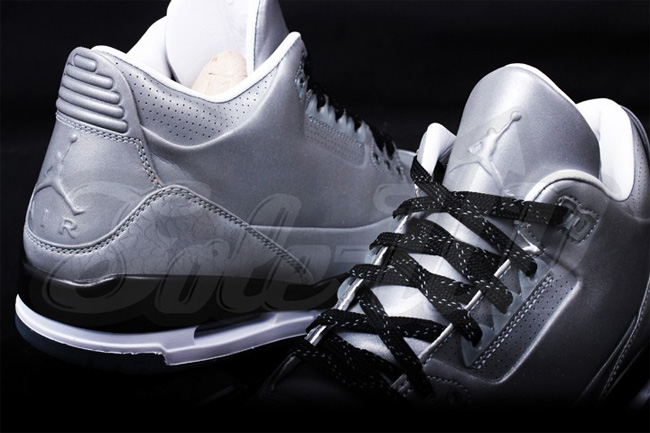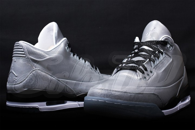 这款采用 Air Jordan 3 鞋型的 Air Jordan 5Lab3 的亮点在于鞋面、鞋舌、后跟和鞋带上都采用了 3M 反光材质打造。