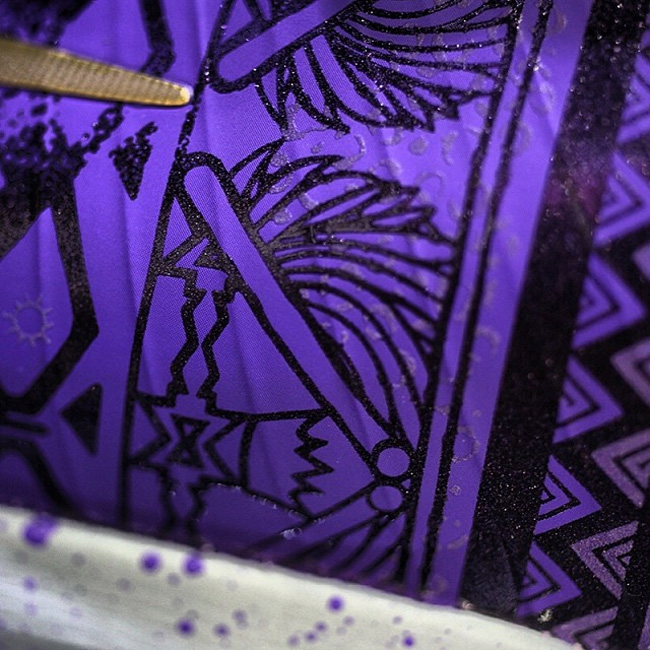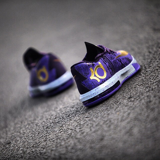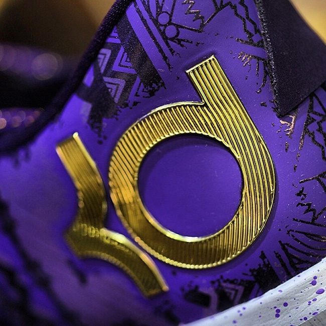 这款黑人月配色的 Nike KD6 蓝色的鞋面上带有黑色的黑人月图纹,而 Swoosh 和 KD LOGO 则采用了颇具金属光泽的金黄色打造,十分抢眼,鞋舌上也有金色的 BHM 字样。中底则采用泼墨点缀。 via instagram.com/gc911