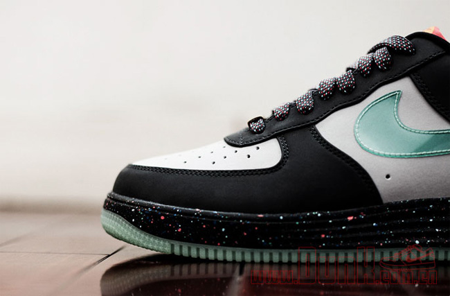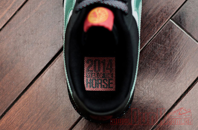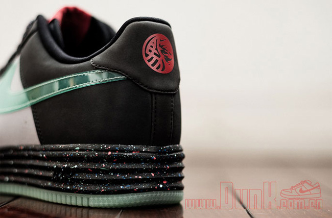 作为 Nike 在 Air Force 1 基础上推陈出新的新鞋型,这双马年别注的 Lunar Force 1 将斑斓的墨点效果应用在鞋款标志性的 Lunaron 中底上,并以象征翠玉的半透明 PVC 材质打造品牌 Swoosh ,配合黑白双色皮革及红色的繁体「马」字刺绣鞋标构成,而系于鞋带的金属标牌则纂刻有「马到功成」的吉祥祝福。