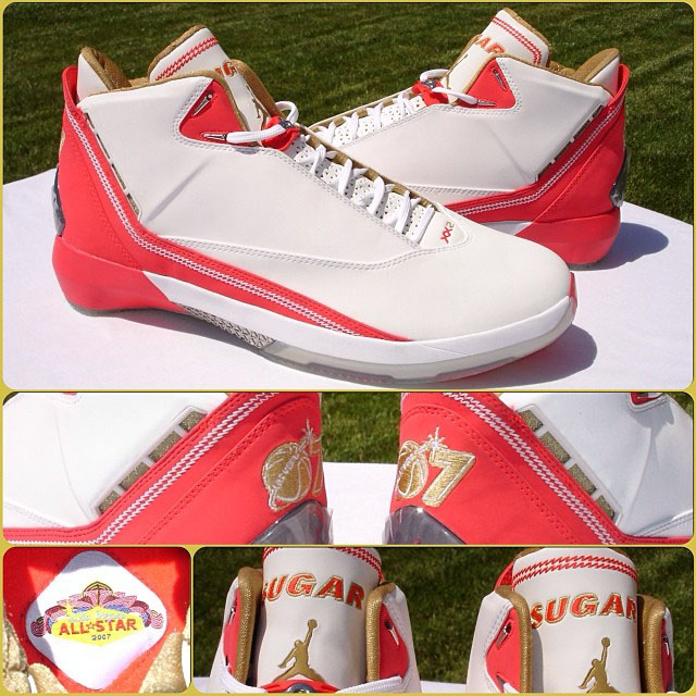眼前这款从未露面的罕有Air Jordan XX2 PE曝光自球鞋收藏家Jay Jones。此双球员版战靴是Jordan Brand于2007年为Ray Allen特别打造,只是当年Ray选择了着用另一款金色版本。白色鞋身搭配红色以及金色点缀,同时附有全明星以及Ray个人元素的呈现。