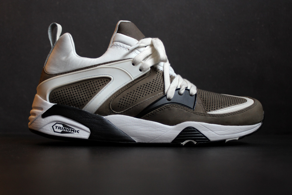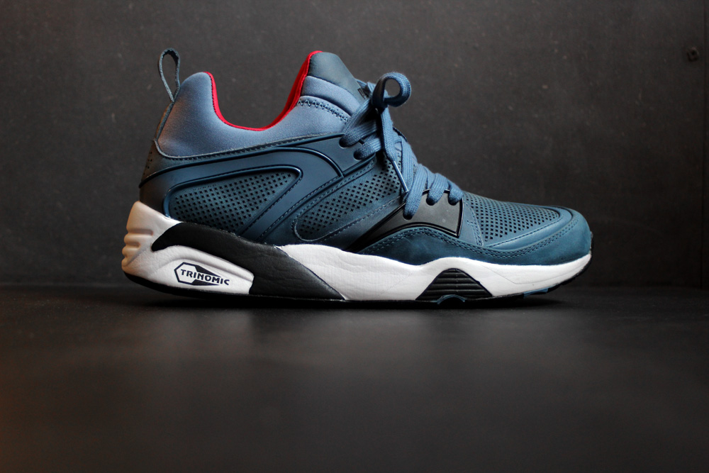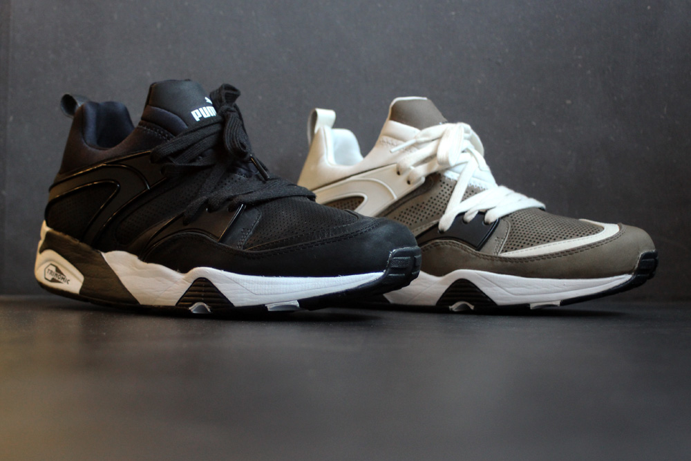 Puma Blaze of Glory将于2014年推出多款配色,鞋款均采用皮质与麂皮拼接而成,搭配白色中底及TPU射出细节。据悉该系列将于2014年秋季正式上市,并推出白棕、黑白、蓝白等配色供人选择。