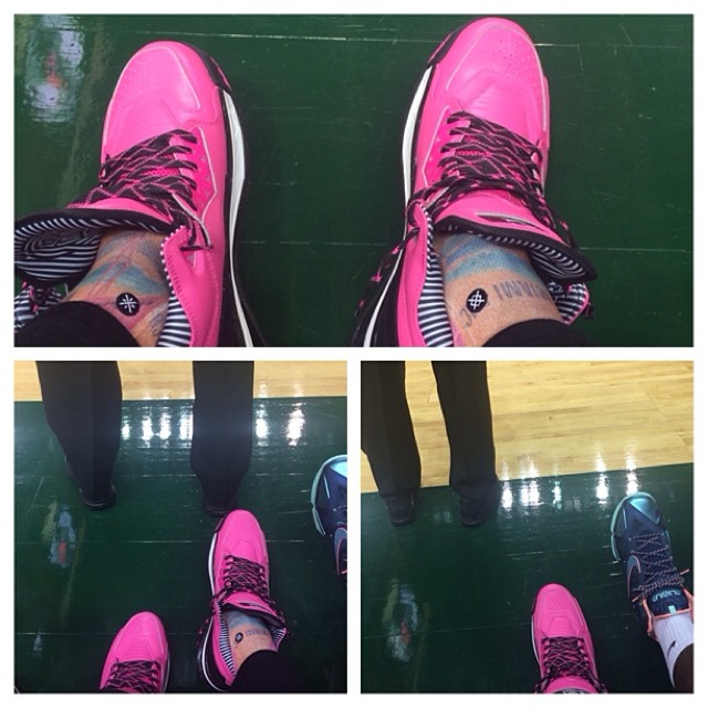 韦德今天在观看迈阿密大学对阵杜克大学的NCAA比赛时,上脚了一双全新配色的李宁韦德之道2。粉色鞋身搭配白色中底,黑色细节及黑白眩晕迷彩内衬点缀其中,鞋款整体极为亮眼。这双全新配色的李宁韦德之道2尚无任何发售信息。