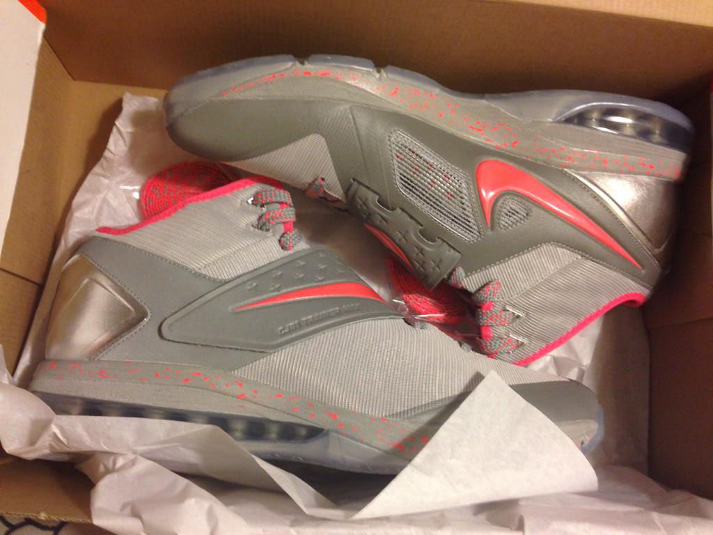 周日开赛前,网上率先曝光为Calvin Johnson打造的明星碗别注CJ81 Trainer Max PE,反光银色鞋身附有特殊纹理,反光效果如同之前的Nike Knows系列一般,淡红色则点缀于鞋带/swoosh/内衬以及中底泼墨。