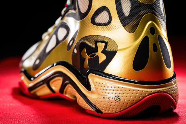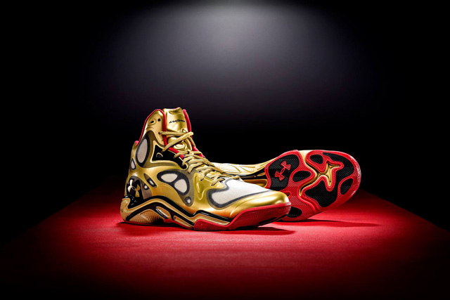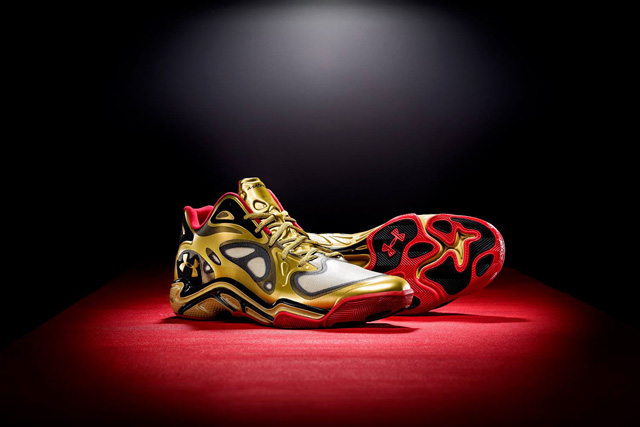 为迎接即将开幕的第56届格莱美奖,Under Armour特地以“颁奖季”为灵感打造出Anatomix Spawn “Awards Season”系列。该系列鞋款以亮眼的金色打造鞋身,辅以黑色细节及红色内衬,鞋垫上印有黑色燕尾服图案。值得一提的是,库里将在明天对阵开拓者的比赛中穿着此鞋。