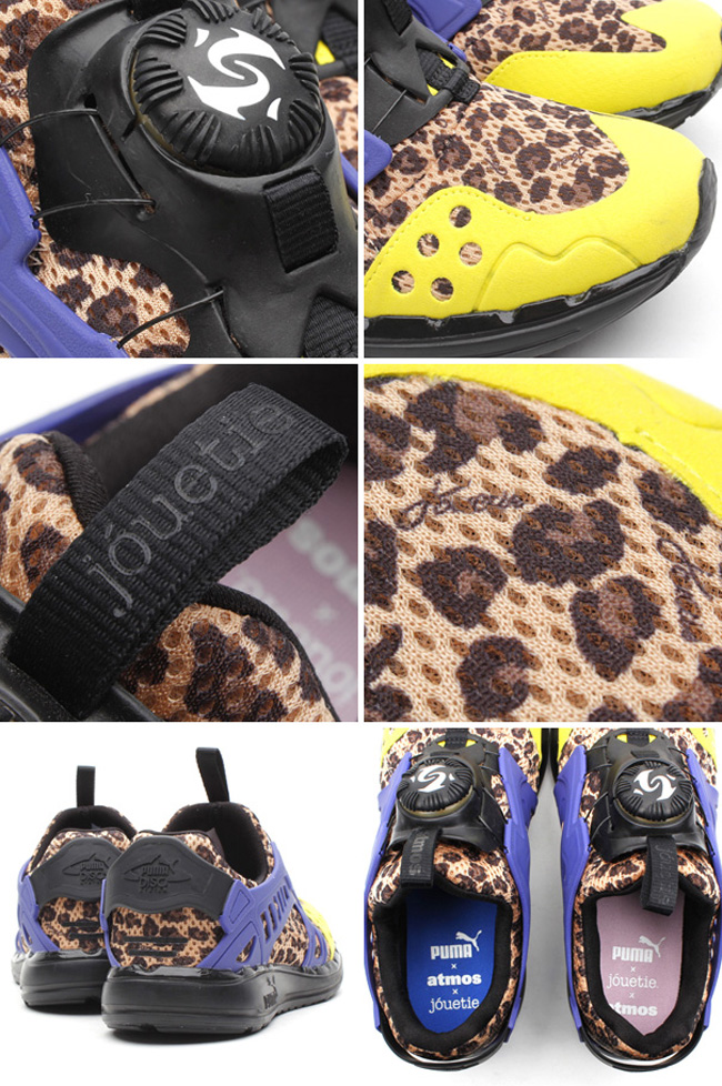 Puma此次找来日本著名鞋店atmos与日本著名品牌jouetie 推出全新联名jouetie x atmos x Puma Disc Blaze Lite鞋款。豹纹鞋身搭配黑色中底、内衬,黄色及蓝色细节点缀鞋面之上,鞋垫上印有此次联名合作的字样。据悉此鞋款将于2月7日正式上市。