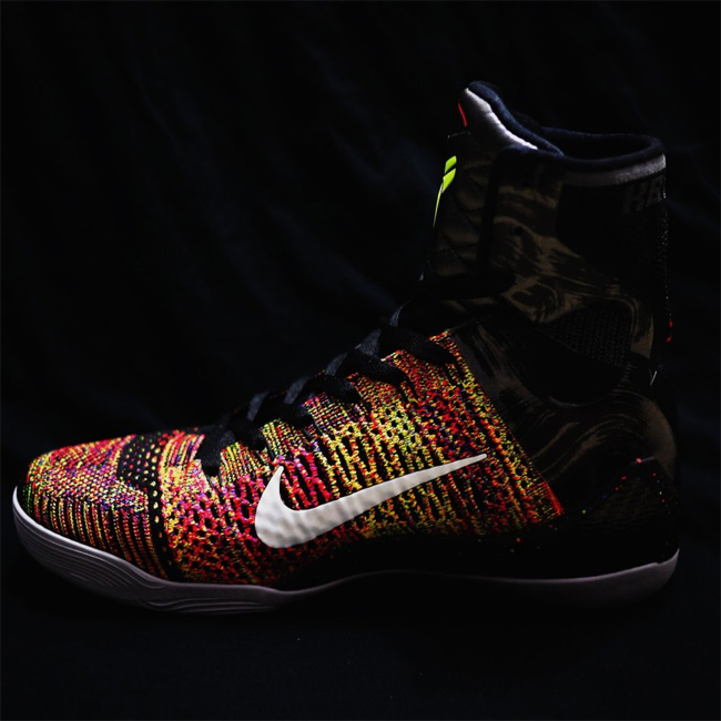 作为科比第九代战靴的第一款配色,Nike Kobe 9 Elite XDR “Masterpiece” 将于 2 月 8 日正式发售,带来更多关于这款 Flyknit 鞋面篮球鞋的细节图片。 超高帮的设计,色彩斑斓的编织鞋面搭配大面积的碳板,上脚效果也颇为抢眼。带有特殊纹路的 XDR 大底不仅耐磨,也提供了良好的抓地性能。 货号:630847-001 发售日期:2 月 8 日 发售价:¥1699