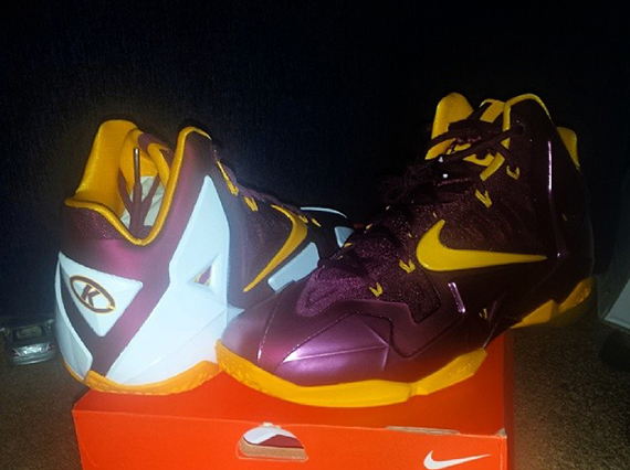 之前已有SVSM等高中的LeBron 11 PE曝光实物,现在再来一所,同样是大家熟悉的,Christ The King高中。主客场双色同时曝光,辅有白色搭配的为主场版本,酒红色为主色的是客场版本,后跟均印有学校标志。