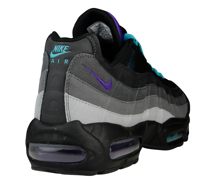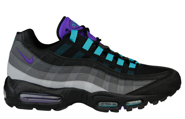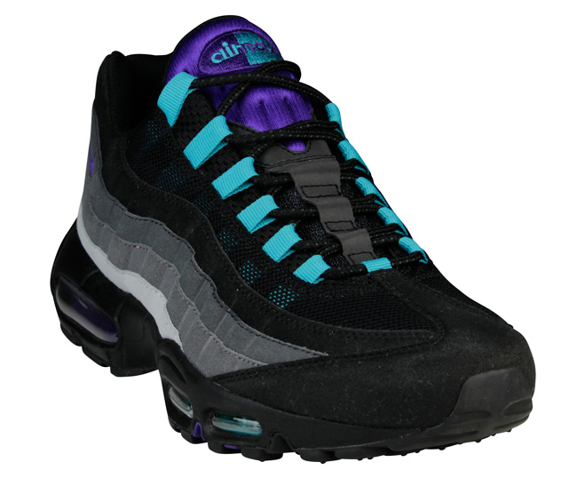 眼前这双全新配色的Nike Air Max 95 选用黑灰色调打造鞋身,辅以湖蓝鞋带孔及紫色细节, 令人极易联想到同样以该色调打造而成的Air Jordan 5 “Black Grape”。此鞋款现已在部分店铺上架,喜欢的朋友不容错过!