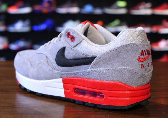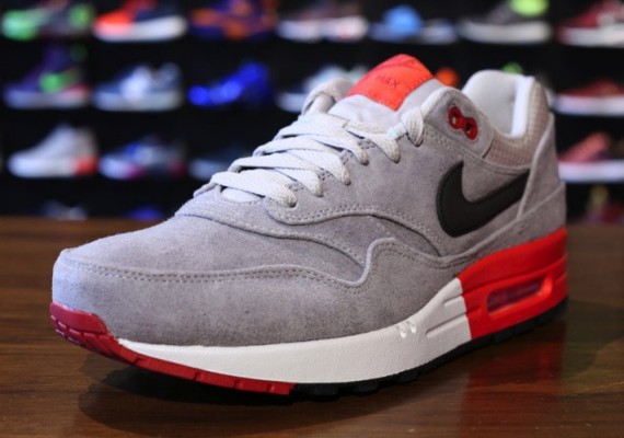 Nike Air Max 1 Premium 发布全新配色,鞋身由灰色麂皮材质打造而成,后跟及鞋舌等处辅以亮眼的红色细节点缀,令鞋款简约而不简单。据悉此鞋款货号:512033-006,将于近日正式上市。\ \