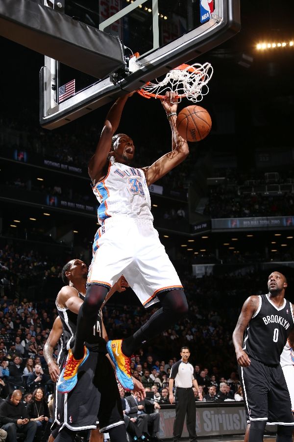 在昨天雷霆对阵篮网的比赛中,雷霆早早取得大比分的领先,这也使得杜兰特早早下场,自己连续30+的记录也就此终结。但在比赛中,依旧不缺乏亮点,就比如杜兰特脚下的全新版本 KD6,为了配合大洋彼岸的中国农历新春佳节,杜兰特也应景的穿上了一双 KD 6 “Year of the Horse” iD 配色,亮眼的色系绝对是闪耀全场。