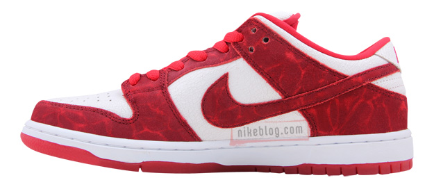 面对即将到来的情人节,Nike也于近日发布了为鞋迷们准备的“情人节礼物“——Nike SB Dunk Low “Valentines Day” 。白红鞋身,鞋面上印有独特的暗纹装饰。此鞋款预计将于2月14日正式上市,售价:98美元,货号:313170-662。